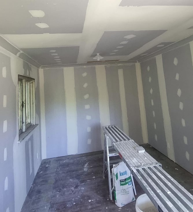 Walls and ceilings re-lined using donated gib