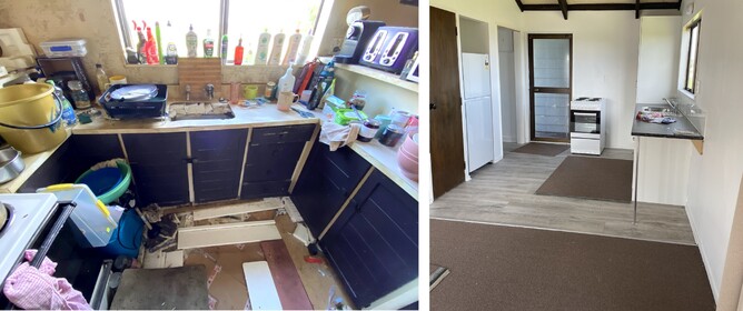 A kuia and her son lived inside. But like many, her home had gotten away from her. With no hot water, cooking facilities, heating or insulation, and floors so rotten they had to navigate across the joist to move around, a concerned family member was quick to try and help.